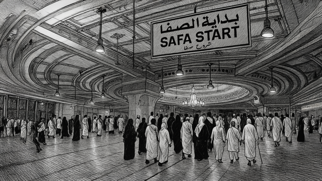 ثم كان السعي سبع مرات بين جبلي الصفا والمروة مشياً وهرولة الذين اكتسى معظمهما بالبلاط الفاخر، فلم يبقَ ظاهراً للعيان منهما إلا شيء يسير من قمتهما، ولأغتنام الفرصة بين حين وآخر بالنظر إلى الكعبة من بعيد، لا يقطعه سوى صياح عامل نظافة أسيوي يمسح البلاط قائلاً بعربية مكسورة “طريق يا حاج!”، فأتساءل: تُرى ما الذي بينه وبين الله ليحظى من بين 2 مليار مسلم بهذه الوظيفة في بيت الله؟ وهل لقب “حاج” الذي نادني به مستحق عند الله فعلا؟ فأروي عطش أسئلتي بكوب من ماء زمزم الموزعة حاوياته في كل زاوية وركن.