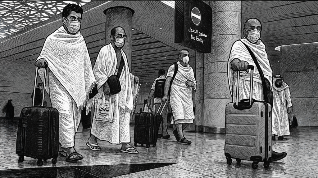 فتواصلنا مع الجمعية واسترددنا أموالنا بعد أن ألغينا الحج، ثم حصلتُ على تأشيرة زيارة للسعودية من جهة العمل في الرياض مختوم عليها “ممنوع عليه الحج لهذا العام”، كوني ذاهباً إلى الرياض قبل بداية مناسك الحج بأقل من شهر فقط، وهذا إجراء تنظيمي معتاد لغلق أي باب خلفي لقيام بعضهم بالحج دون تصريح رسمي، منعاً لتكدس أعداد تفوق قدرة الدولة على تنظيم الحج ورعاية الحجيج.