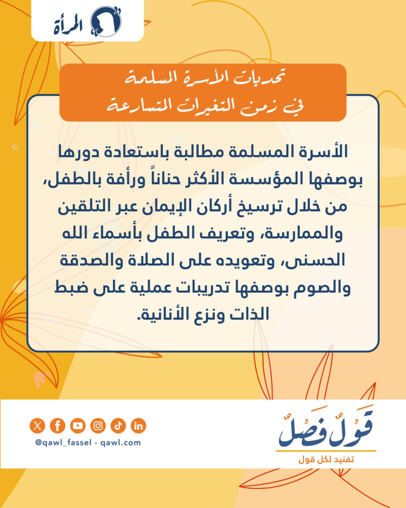 وفي باب المرأة نشرت المجلة مقالين؛ الأول بعنوان تحديات الأسرة المسلمة في زمن التغيرات المتسارعة للإعلامية هدى محمد الذي تناول ما دار من نقاش في الجلسة الثالثة من برنامج وآمنهم من خوف الذي نظمته وزارة الأوقاف والشؤون الإسلامية القطرية في رمضان من عام 1447، إذ ضمت الجلسة مجموعة من المتخصصين ناقشوا تحديات الأسرة المسلمة أمام التحولات الفكرية والاجتماعية والتقنية، وتطرقوا لمواضيع مثل أثر الفردانية والعزلة الرقمية في إضعاف دورها التربوي، كما أكدوا على التكامل بين البيت والمسجد والمدرسة والإعلام لتحصين الأبناء نفسياً وإيمانياً وقيمياً في هذا العصر المتسارع.