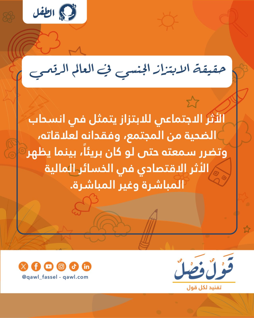 في باب الطفل نشرت المجلة مقالاً بعنوان حقيقة الابتزاز الجنسي في العالم الرقمي للإعلامية هدى محمد، الذي سلط الضوء على جريمة الابتزاز الجنسي السيبراني التي تستهدف الأطفال والمراهقين، موضحاً أساليب الاستدراج والتهديد وآثارها النفسية والاجتماعية، ومبيناً دور الأسرة والتوعية الرقمية والقانون في الوقاية، وكسر الصمت، وحماية الضحايا من الاستغلال والوصمة والابتزاز المتكرر.